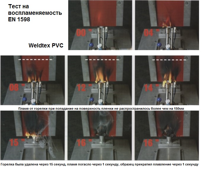 1) Огнестойкость и сопротивление воспламеняемости. Сварочные занавесы Weldtex PVC препятствуют распространению пламени, не горят при отсутствии источника огня, являются самозатухающими, прекращает процесс плавление через 1 секунду после удаления источника воспламенения.